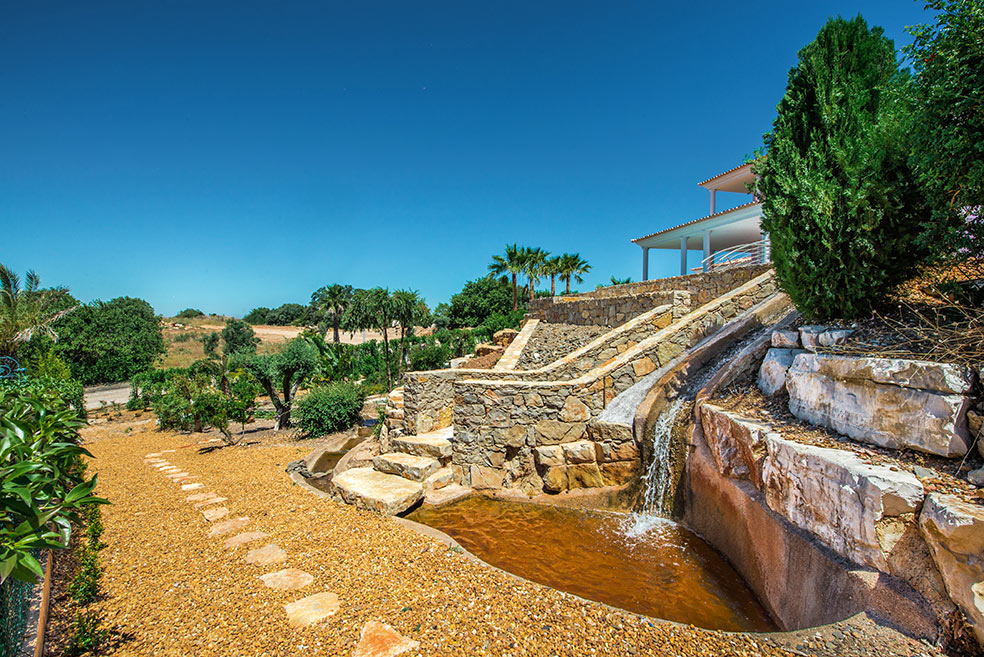 Newly built 420 m2 luxury property, inspired by the encounter between Italian renaissance villa and a traditional Portuguese grand house. 2100 m2 landscaped garden in terraces with pool with a bridge over, waterfall and pond, big lawns and small hide-aways. Ocean view.